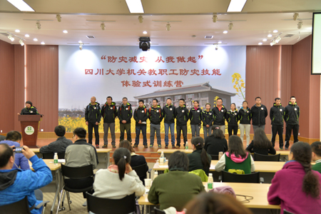 为进一步增强机关教职工应对突发事件,提高防灾减灾意识,提升灾害自救互助能力,2015年11月28日,校机关联合灾后重建与管理学院举办的 机关教职工防灾技能体验式训练营正式开营。此次训练营以“防灾减灾,从我做起”为主题,是灾后重建与管理学院面向学校教职工开展的防灾减灾科普体验活动, 学校机关各单位的70余名教职工参加了训练营活动。