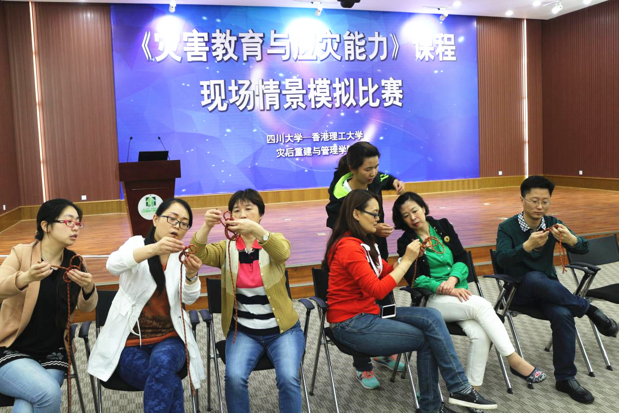 为进一步增强华西门诊部医务工作者的防灾减灾意识,提高灾害自救互助、应急处置能力,发挥我院、四川大学灾害教育研究中心在防灾减灾教育方面的作用,2016年5月26日下午,四川大学华西医院门诊部防灾减灾技能培训在我院举行。此次培训由四川大学华西医院门诊部主办,四川大学灾后重建与管理学院、四川大学灾害教育研究中心承办。为让每一位参与者都能融入情境,扎实养成防灾减灾备灾意识,掌握防灾减灾自救互救技能,根据医务工作者工作实际情况设计课程,我院与华西医院门诊部协商,将培训分六期开展,每期人数不超过40。