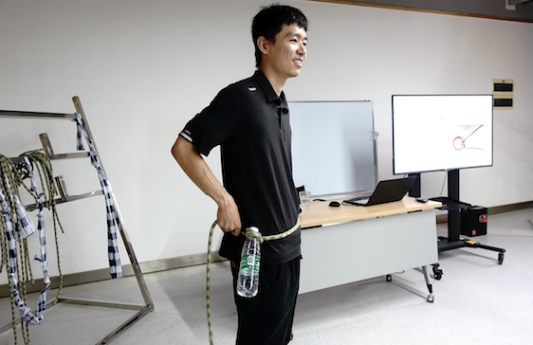 许成哲老师,讲解了古代结绳的广泛用途以及现代生活中常用的几种结绳方式,最后重点教授了灾难逃的绳结技巧,并带领大家开展家庭模拟火灾逃生训练。