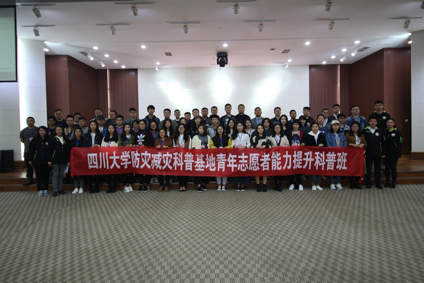 2017年10月24日至26日,四川大学防灾减灾科普基地携手中国共产主义青年团举行应急志愿者应急能力提升科普活动。本次科普活动,共有来自成都市各高校、社区团委、街道办事处、企业等机构的60余名应急志愿者参加。10月24日上午,中国共产主义青年团成都市团校冯卫副校长主持科普开班活动。中国共产主义青年团成都市委志愿者工作部周净副部长作了重要讲话。周净副部长提到:“应急志愿者的建设是应社会发展需求产生的,现代社会建设需要越来越多具备较高素养的志愿者发挥作用。希望能够参加此次科普活动的志愿者们珍惜这次科普机会,提升自己的能力,并预祝此次科普活动取得成功。”