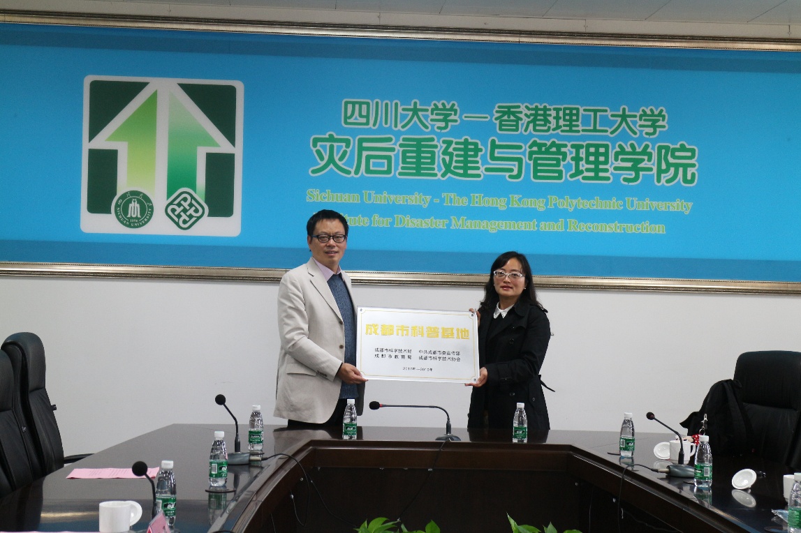 11月1日下午,成都市科学技术服务中心科普部龚明霞部长一行来到学院,为获批的四川大学防灾减灾科普基地授牌。学院常务副院长、党组织书记陈勇,办公室主任李旭东,四川大学防灾减灾科普基地科普工作团队及志愿者参加了授牌仪式。