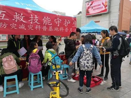 2018年3月22日,由四川大学防灾减灾科普基地主办、由四川大学应急救援学会承办的“珍爱生命,防灾减灾”自救互救技能科普活动在四川大学江安校区青春广场顺利举行。本次活动主题为灾害自救互救知识技能科普,涵盖灾害防备、应急等相关实用基础性知识及技能,以地震为切入点,串联起消防、滑坡、洪涝等常见的影响较大的灾害。活动旨在让同学们了解灾害常识,掌握最基本的应急救援技能,力图使其建立、形成系统性的灾害应对能力,真正做到有备无患。本次活动一经开展受到全校师生的喜爱,覆盖江安校区全体师生,达200余人。