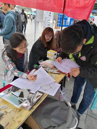 2018年3月21、22日,工作人员进行了较大规模的线上宣传,吸引了众多同学参加。3月21日工作人员在青春广场上摆摊,在熙熙攘攘的青春广场上,到活动摊位处参与知识竞答和学习应急救援技能的同学络绎不绝。活动设置了不同难度梯度的灾害知识题目,让同学们逐层闯关,来获取相应奖品;通过展示便携式消防灭火器、应急地图、应急包、无人机等常见应急救援设备,让同学们在了解各应急产品的功能及使用方法的同时,加强对灾害救援的直观认识;同时,工作人员还向同学们发放了灾害知识宣传手册,介绍了包括地震、火灾、洪涝、滑坡、泥石流等常见灾害的基本知识和相应的逃生避难技巧,以及日常生活中防备灾害的有效手段。