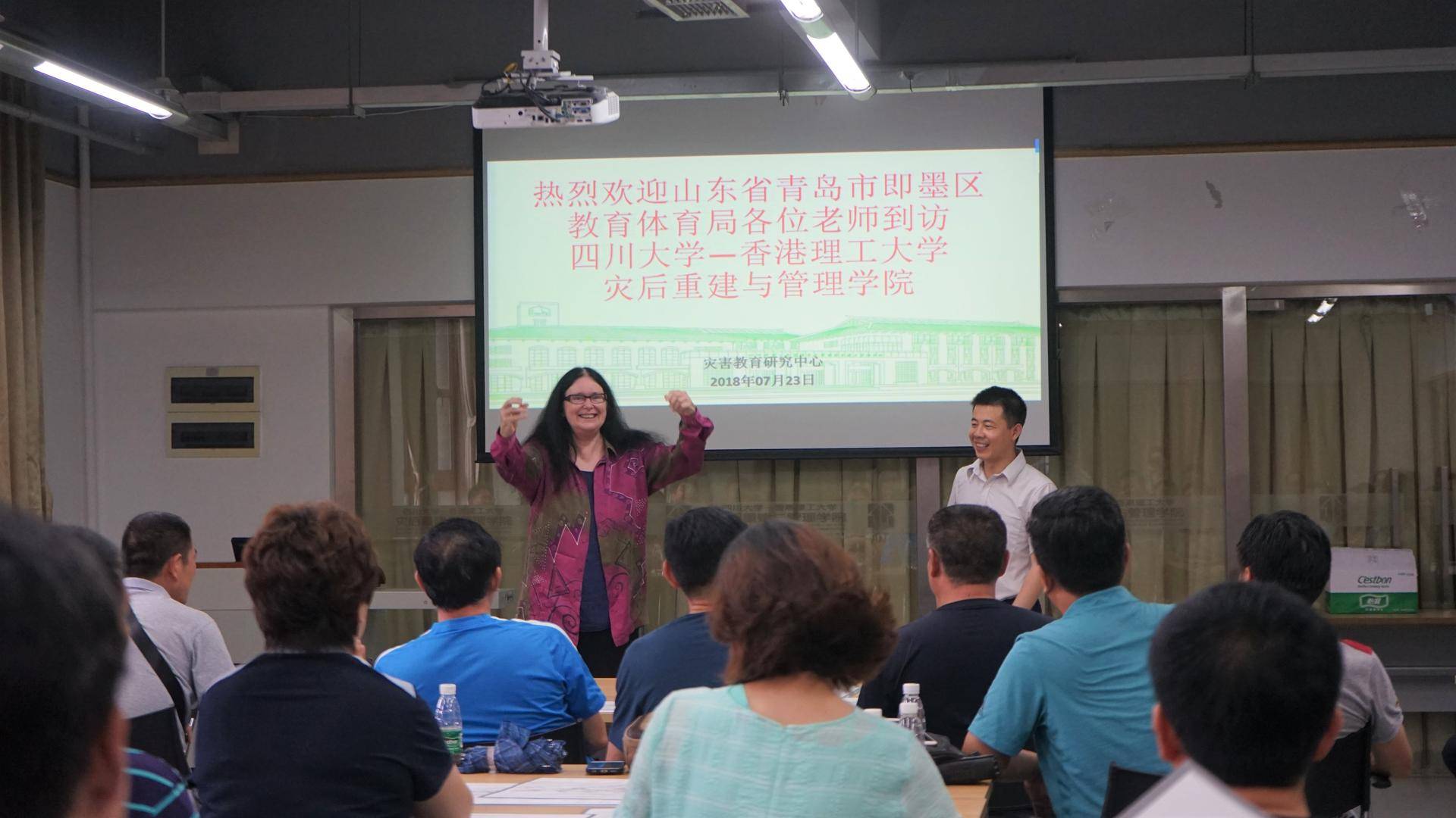 2018年7月23日下午,由山东省青岛市即墨区教育体育局组织的青岛市即墨区中小学幼儿园校园安全管理暨风险防控体系建设培训班赴学院参观学习和进行减灾经验交流。卡隆基院长和陈勇常务副院长对他们的到访表示热烈欢迎并介绍了学院的基本情况,田兵伟副教授就学院在安全教育和灾害教育方面的设施和基础工作进行了介绍。