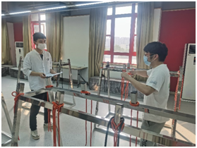 经过严密讨论与精心准备,在做好防疫工作的前提下,6月10日下午,实验室安全与环保课程线下实验正式启动,课程同学将前期线上学习的知识与实际操作相结合,在老师、教辅人员的指导下,完成了实验练习与考试。 教辅人员进行体温检测与进出实验室登记 做好防护工作后,同学们在教辅人员的引导下,分别到各实验区进行相应的学习和考试。 通过线下实验,同学表示通过老师的指导与亲自动手,能更好的掌握线上学习知识。