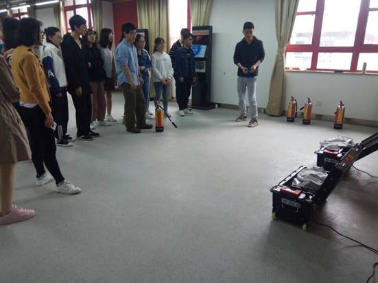 随后大家移步到综合消防救援实训实验室,进入活动的第二个板块——消防灭火、报警和应急救援。该板块的主讲老师是许成哲老师。许老师首先给大家观看了一个火灾从发生到被扑灭的过程的视频,短短三分钟不到,一间完好的起居室就被烧成了灰烬,这使大家唏嘘不已。随后许老师就利用模拟灭火器和模拟火焰向大家详细展示了灭火器的正确使用方法和灭火时应注意的问题。许老师在动作娴熟专业的同时也不乏风趣幽默,一时间现场氛围极为活跃。在讲解完之后,每位同学都积极上手操作了一番使用干粉灭火器灭火演练,有些同学还显得意犹未尽。随后许老师利用先进的火警拨打设备让大家在逼真的场景中深刻地解到了拨打119时必要的流程,让同学们熟悉和模拟了报警的整个过程,教学达到了十分好的教学效果。