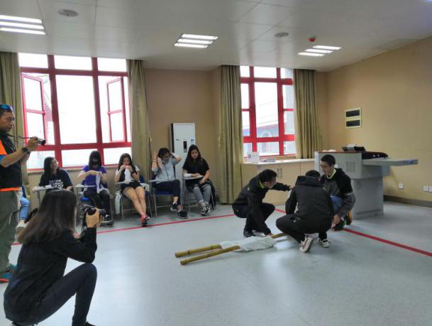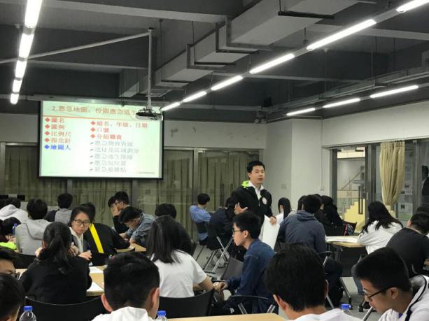At the end of the opening ceremony, Associate Professor Tian Bingwei had a briefly introduced the composition of the curriculum. The curriculum is divided into emergency plan and disaster preparation: it includes the preparation of emergency plan, campus emergency map, and the preparation of emergency kit; disaster escape and simulation drilling: it includes how to use the fire extinguisher and it’s applications; emergency medicine care and life rescue: it includes trauma bandage and treatment. Associate Professor Tian Bingwei, Tong le and Xu Chengzhe gave lectures and 12 postgraduate students worked as teaching assistant to communicate with teachers and students from Hong Kong. Teachers and students were enthusiastic of classroom interaction and showed great interest in curriculum design of disaster risk reduction.