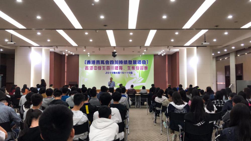 2019年4月18日上午,“香港赛马会四川持续发展项目——香港中学生四川体育、生态学习团(总第六期)”在香港岛校长联会主席方仲伦校长带领下,文理书院张丽雯校长、余振强第二纪念中学李德辉校长;香港赛马会对外事务部主管潘太平先生、内地事务高级经理陈岳鹏、内地事务经理助理陈业康、内地事务主任刘美宝为马会随团代表,以及香港庇理罗士女子中学、爱庄月明中学、培侨中学的10多位教师及100多位中学生团员,一行港方共计120余人到访学院并参加由学院开设的“防灾减灾能力提升”研究型微课程。同时,四川成都市双流区组织部人才办牵头,双流区教育局李光纯局长领队、双流中学、双流棠湖中学和双流棠湖外国语学校校长和教师20余人出席了此次活动,观摩课程和加强川港交流。此外,由我院党支部研究生12名党员组成的“防灾减灾教育与科普志愿服务队”开启了首次志愿活动,全程服务川港防灾减灾教育交流。本次项目和活动由灾害教育研究中心田兵伟副教授主持。