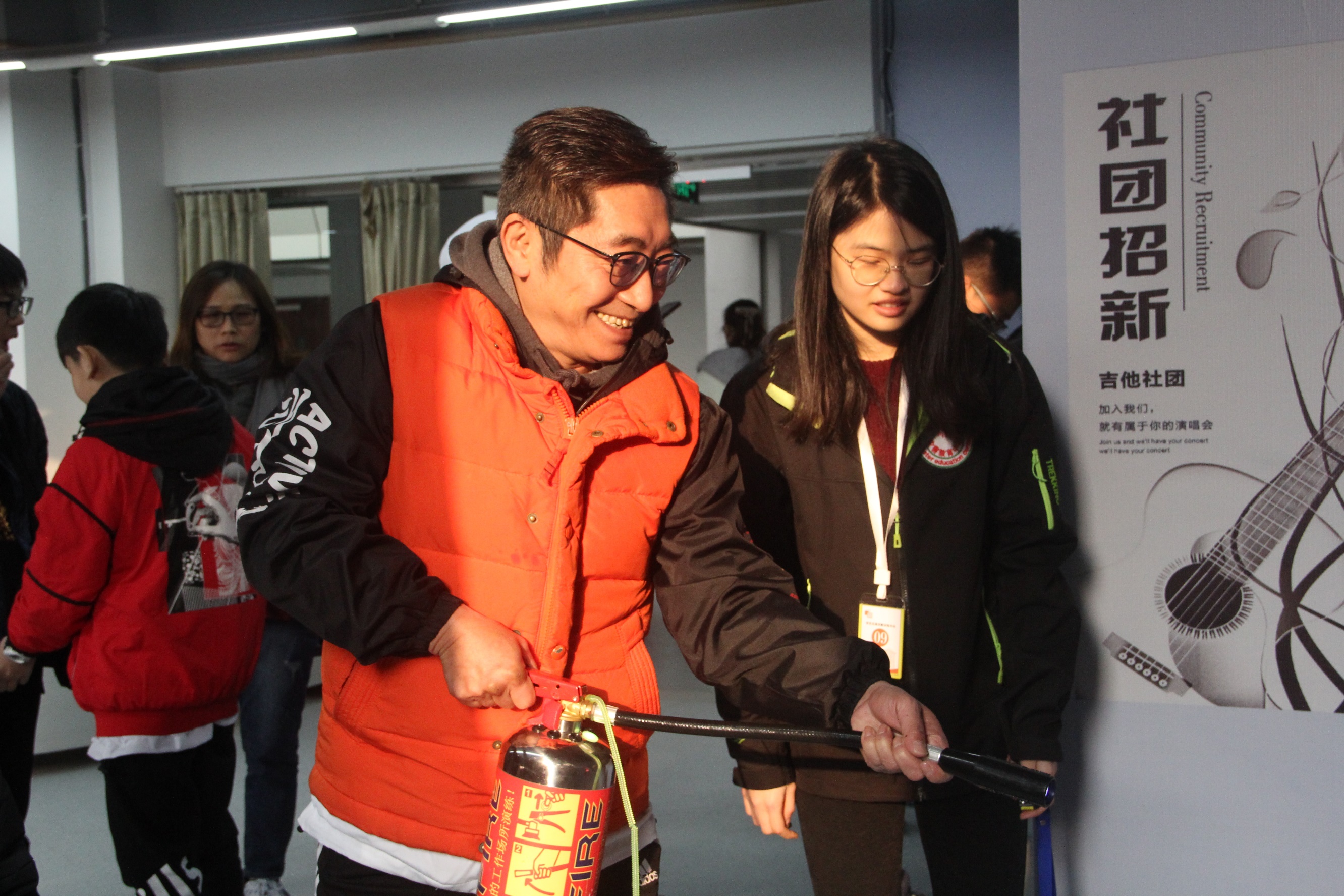 “初期火灾处置”课程以学习使用灭火器为主,课程老师循循善诱的讲解,让香港师生表示简单、易懂、实用。“如果灭火器的压力表是红色的就不能使用!”“太近了你快回来,老师说要离火源2到3米远”等对话常常引起现场师生大笑。