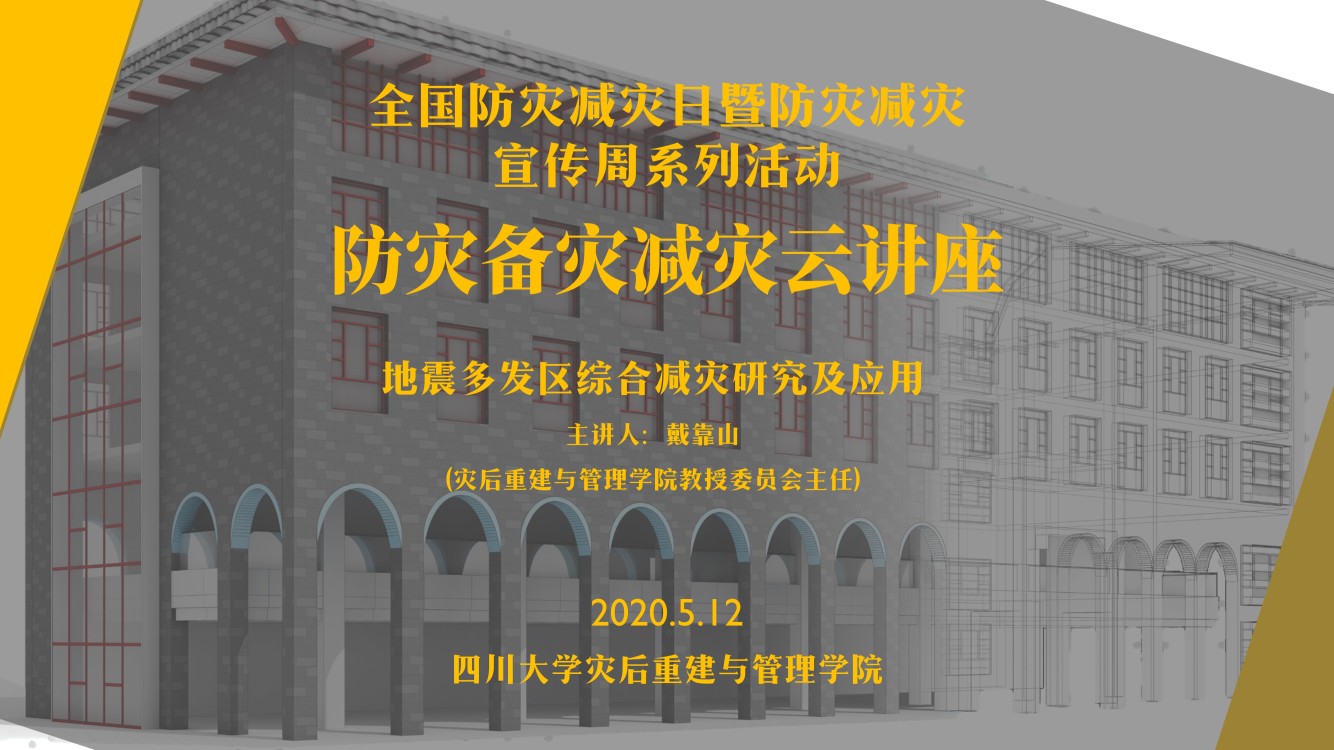5月12日下午14:30,我院教授委员会主任戴靠山教授,开设了题为“地震多发区综合减灾研究及应用”的线上讲座,介绍了四川大学如何利用学科和地理优势进行地震灾害方面的研究。