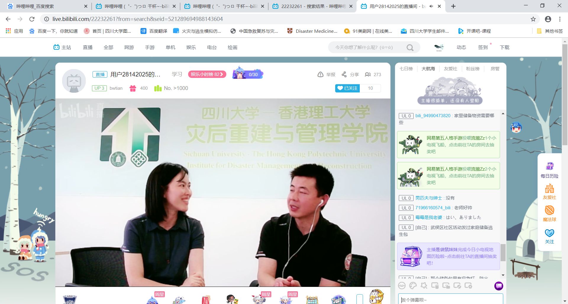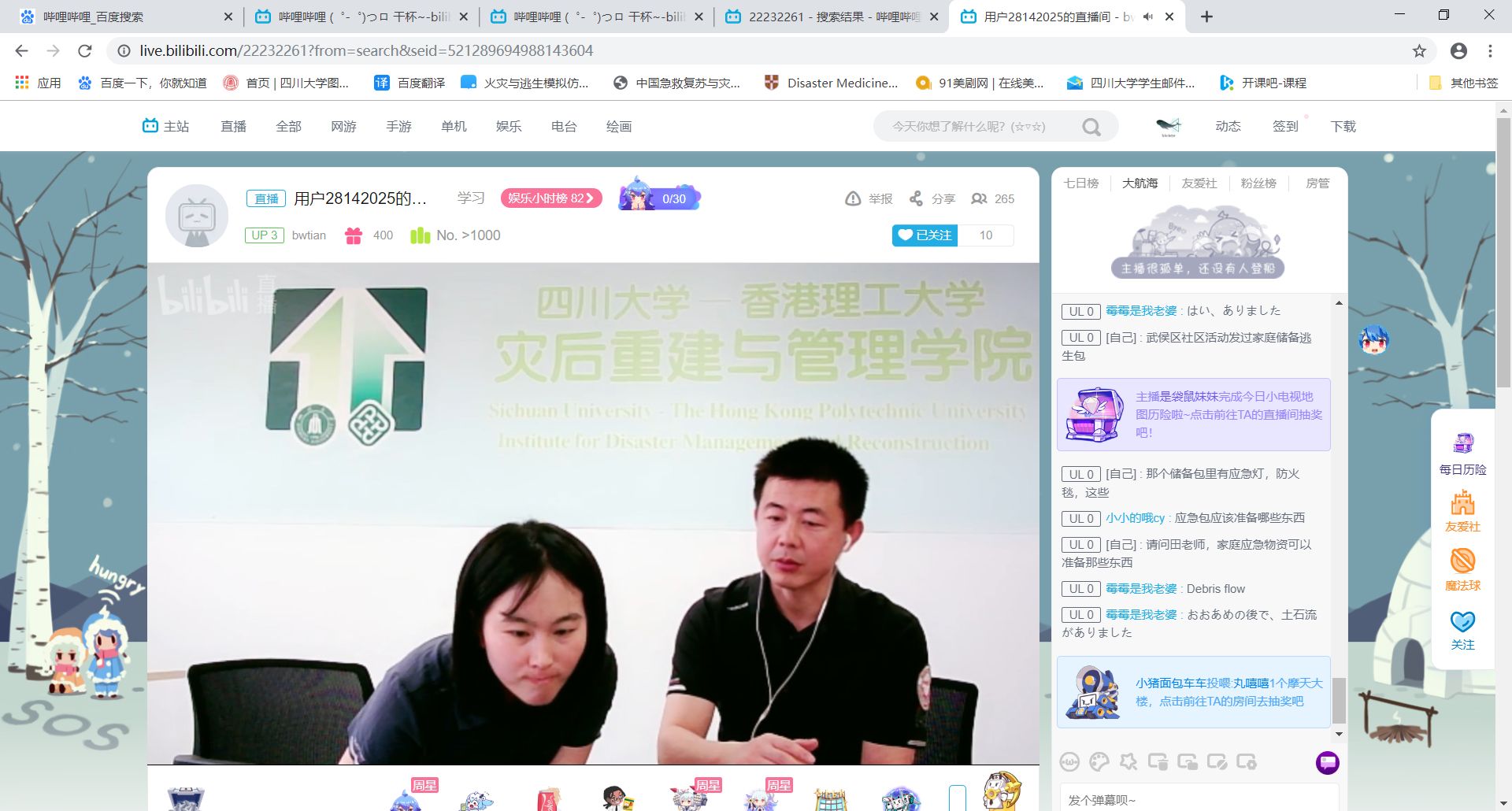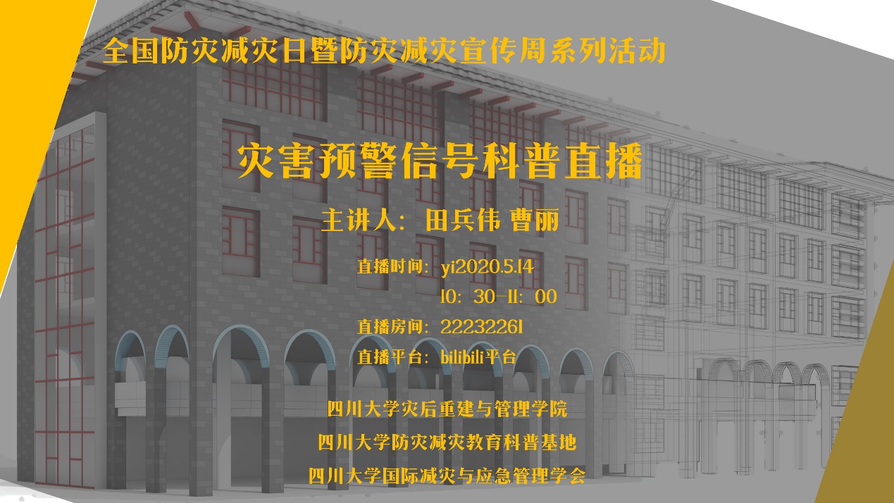 5月14日上午10:30我院联合四川大学防灾减灾教育科普基地以及四川大学国际减灾与应急管理学会开展了灾害事故预警信号云科普活动。直播科普活动以问答以及与观众互动的形式开展,共有300余人进入直播间,参与活动