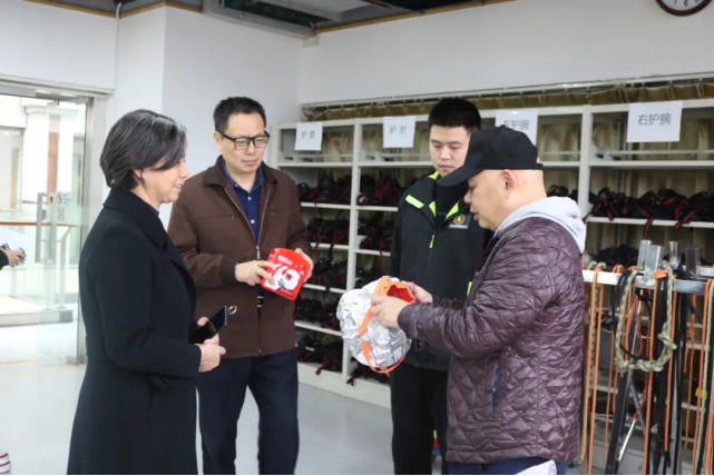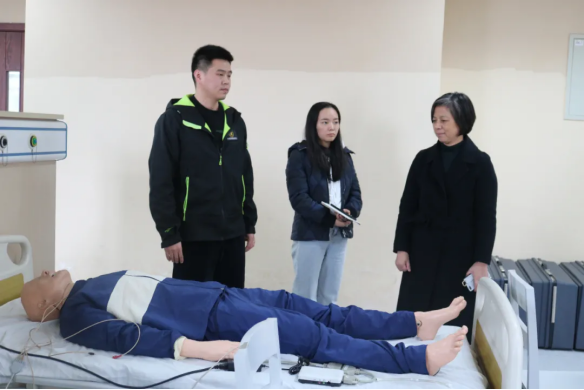 参观中,中心相关负责人带领王荷兰副研究员分别参观了“早期火灾处置”、“基础生命支持”、“高级生命支持”、“安全应急准备”、“虚拟仿真教学”、“个体防护装备”等实验室。参观过程中,中心相关负责人和课程老师向王荷兰副研究员介绍各实验室的用途、设备、作用等方面。