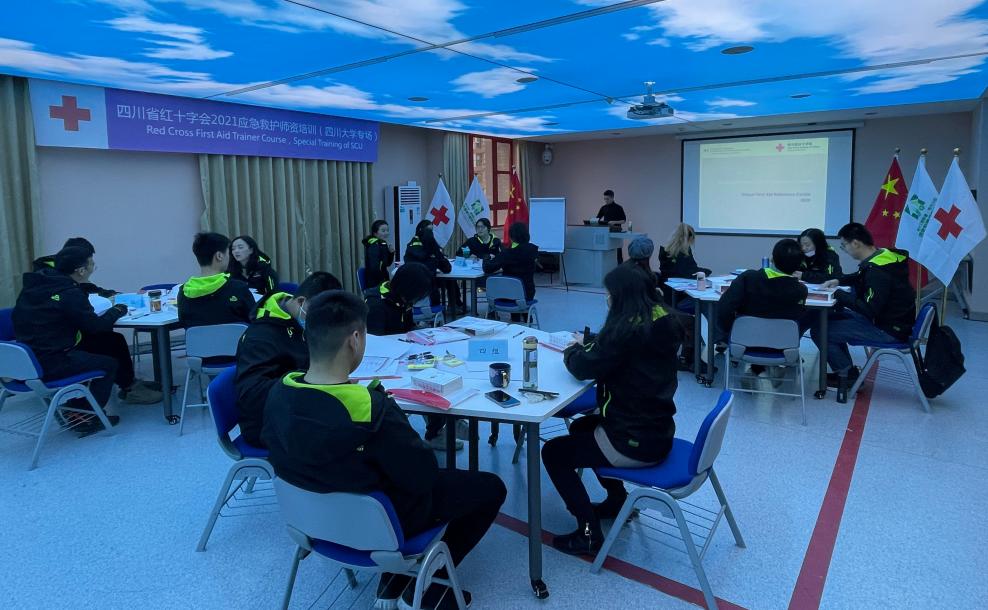 2021年12月19日上午,灾后重建与管理学院在安全应急技能训练中心(以下简称“中心”)举办了为期七天的首期四川省红十字会应急救护师资培训班,本次培训包括专职教师13人,在校学生7人在内的20名学员参加。