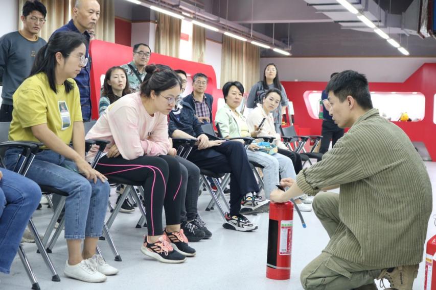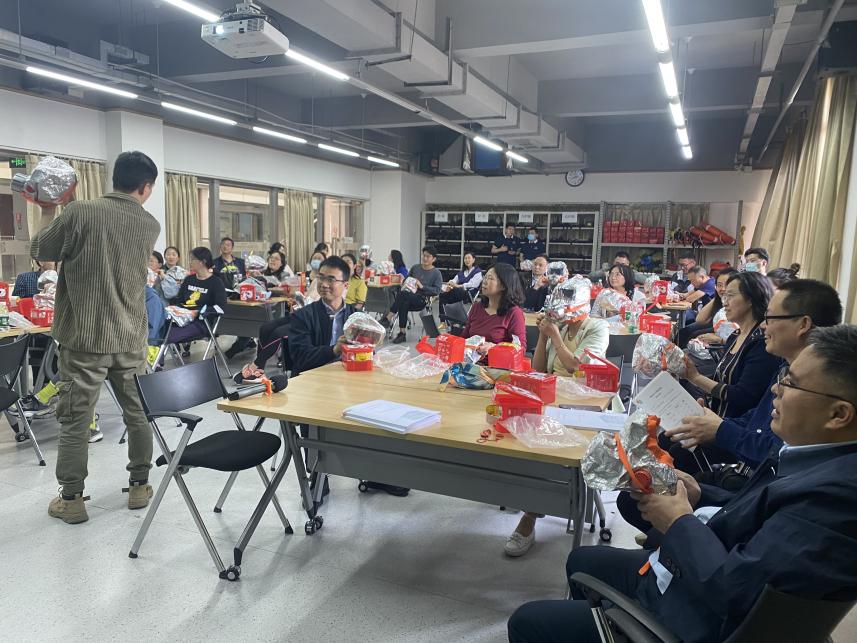 “室内火场求生”及“初期火灾处置”两个板块均以实训为主、理论为辅。在中心教师指导下,教务处员工学习了火灾的相关基础知识,掌握了消防过滤式自救呼吸器规范佩戴、室内火场求生、模拟4KG干粉灭火器规范操作及灭火毯等实践操作技能。