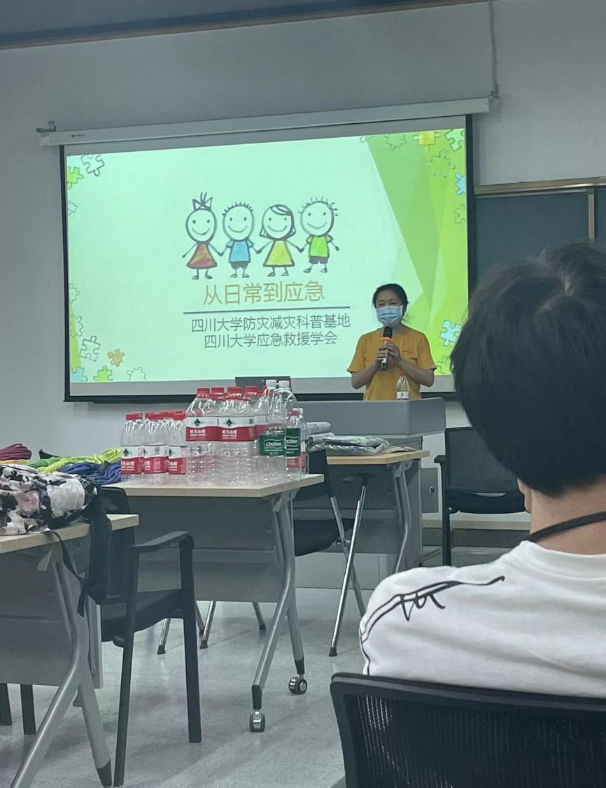 2022年5月8日下午,由四川大学防灾减灾科普基地、四川大学应急救援学会承办的“应急素养提升计划—运用生活物品制作简易应急物品”的活动在我院C106教室举行。来自华西公共卫生学院、吴玉章学院、外国语学院、文学与新闻传播学院、匹兹堡学院等10余个学院共32名学生参加了此次活动。本次活动邀请我院鄢婷婷老师主讲,她结合自己的课程,带领着学生用矿泉水瓶、旧报纸、废旧纸箱等生活中常见的物品,制作简易应急物品。快跟随我们一起,到现场看看吧,旧物品有哪些妙用。