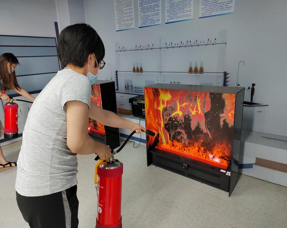师生进行模拟灭火演练