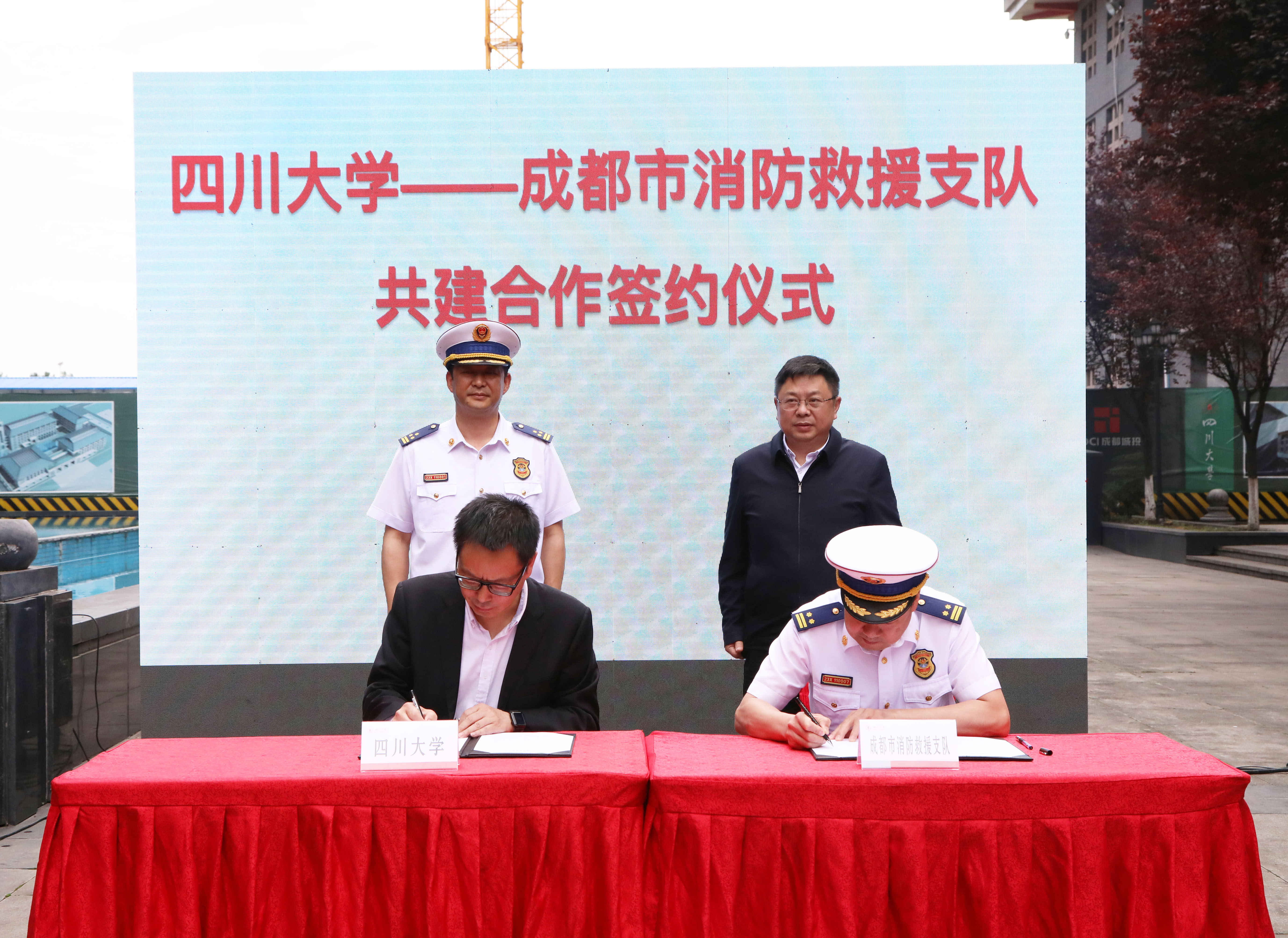 我校灾后重建学院常务副院长陈勇和成都市消防救援支队副支队长李兴荣分别代表学校与成都市消防救援支队签署了校地合作协议。