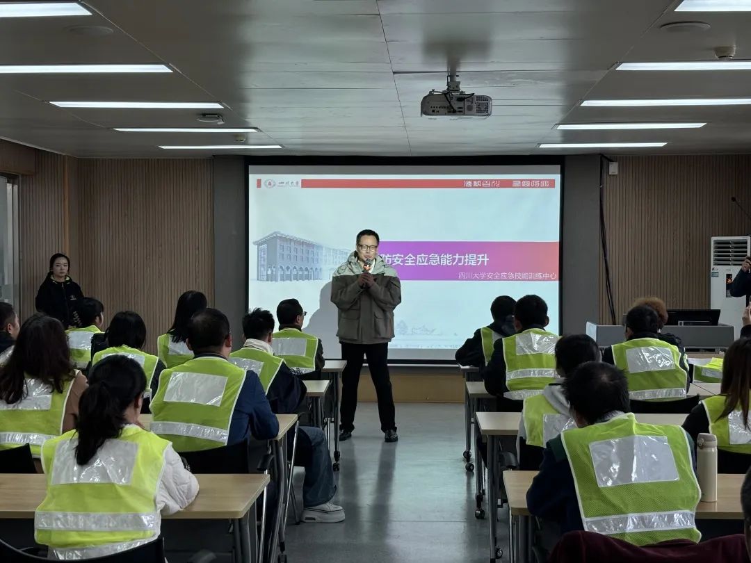 2023年11月14日下午,来自四川师范大学33个学院、27个部处的90余名教师及管理人员在四川大学安全应急技能训练中心(以下简称“中心”)进行安全应急能力提升课程学习。