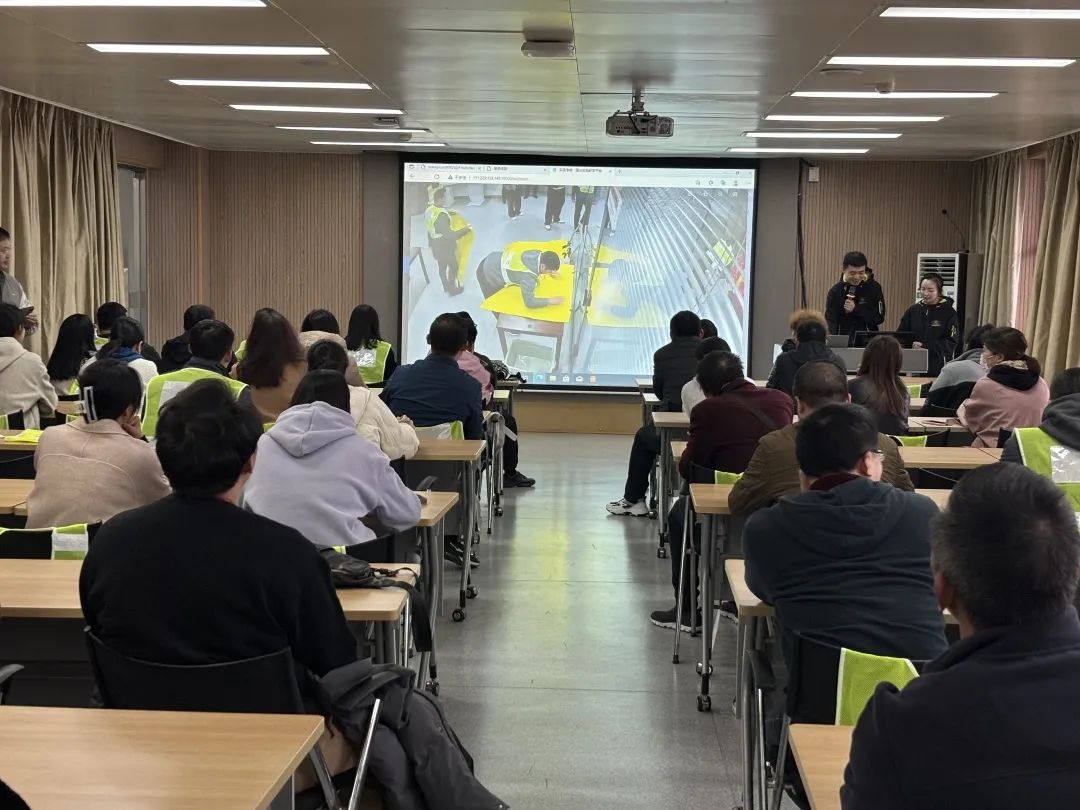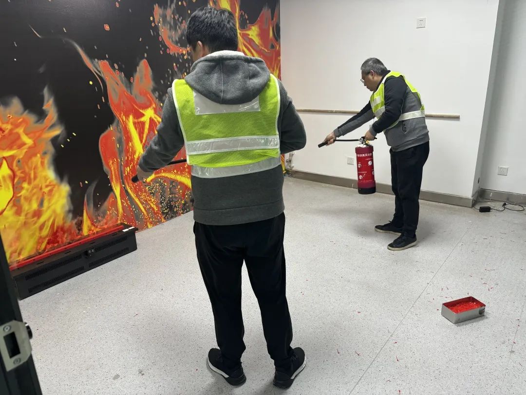 本次课程以“消防安全”为主题,包含初起火灾处置、室内火场求生、大楼疏散等内容。学员们在学习完相关理论知识后,亲身实践了模拟4KG干粉灭火器与模拟灭火毯,并完成了相应考核。