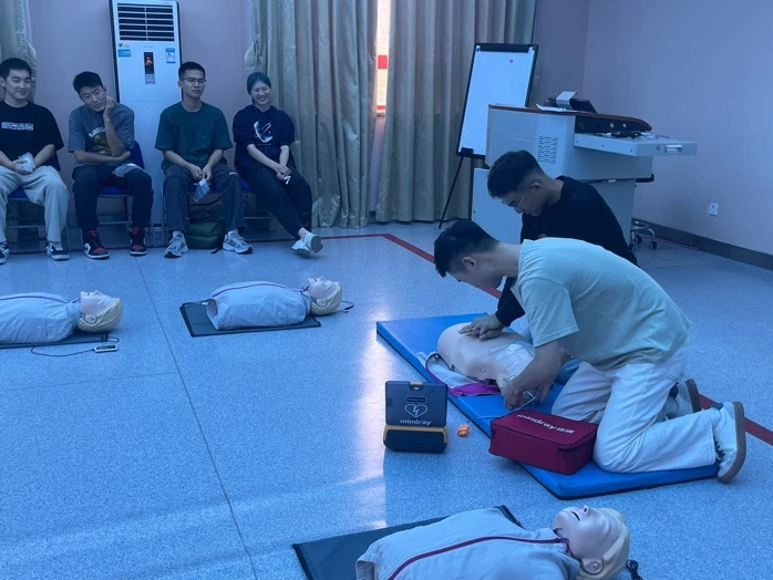 在汲取基本概念与科学知识之余,得益于丰富的教具和完备的实验室设施,同学们纷纷进行实际操作,真切感受应急技能的步骤性、方法性和计划性。