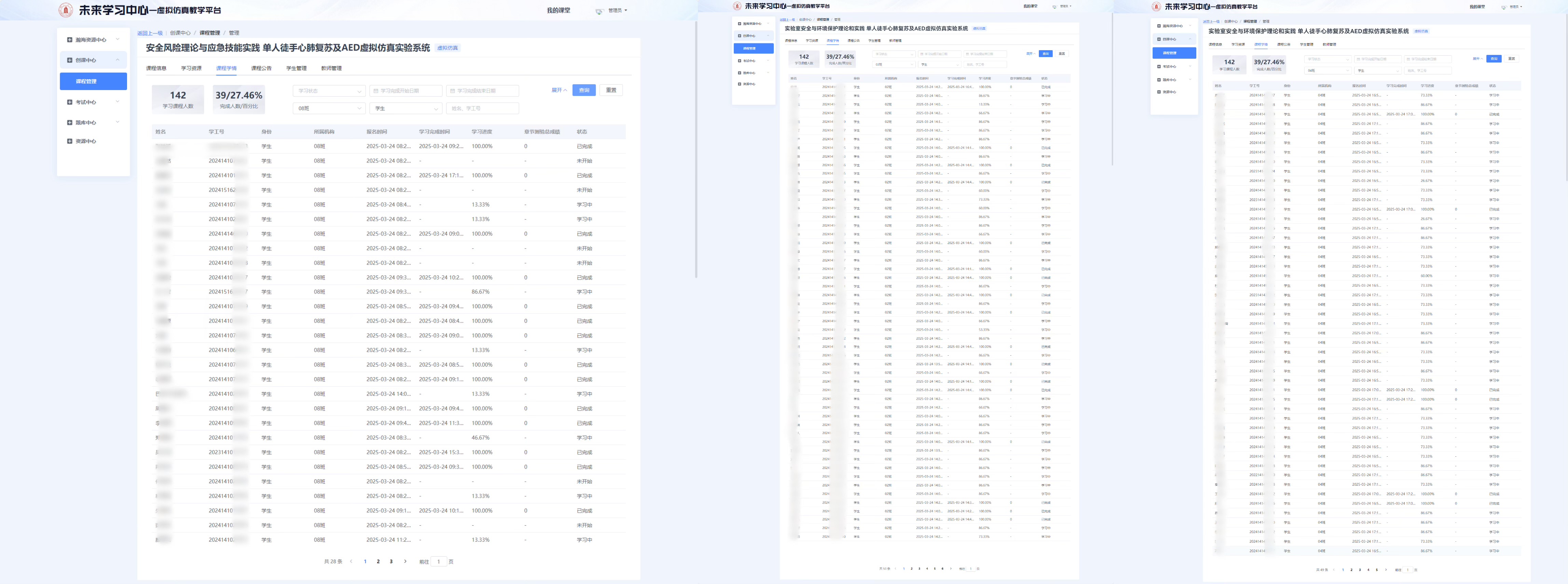 在各方努力下,2025年3月24日,中心课程《安全风险理论与应急技能实践》(课程号:403327010)、《实验室安全与环境保护理论和实践》(课程号:918003020)在AI赋能创新实验室正式运行。53名学生通过线上远程操作突破空间限制;106名学生在线下实操感受虚实融合。实验中师生互动频繁,同学参与度高,流程推进有序,成效良好,为后续教学积累了宝贵经验。