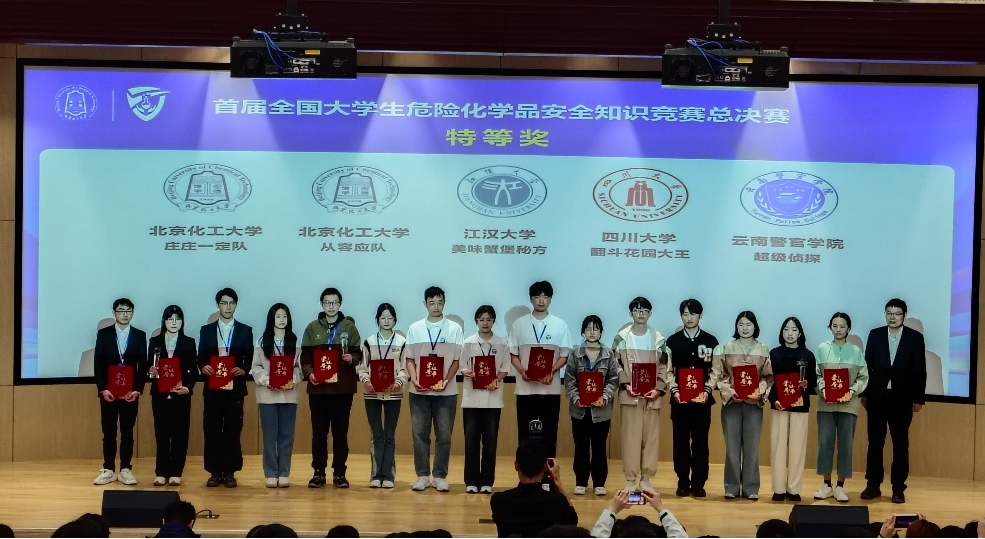 4月19日,在首届全国大学生危化品安全知识竞赛中,来自化工学院、完成中心《实验室安全与环境保护理论与实践》《化学实验室安全理论与实践》《实验室安全与应急技能》等课程的林文轩、冉美龄等同学,荣获团队特等奖1项、团队一等奖1项及个人“安全之星”称号。