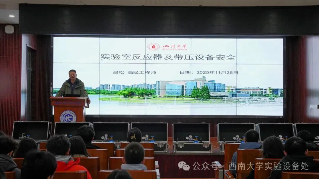 为切实增强实验室气体钢瓶、反应釜等危险源安全风险防控能力,提升师生实验室安全意识和实验操作技能,夯实校园安全稳定根基,11月26日-27日,学校邀请四川大学安全应急技能训练中心专家团队来校开展“实验室反应器及带压设备安全”专题培训。本次培训专设气体钢瓶减压阀实操训练环节,吸引了15个二级单位300余名师生参加。