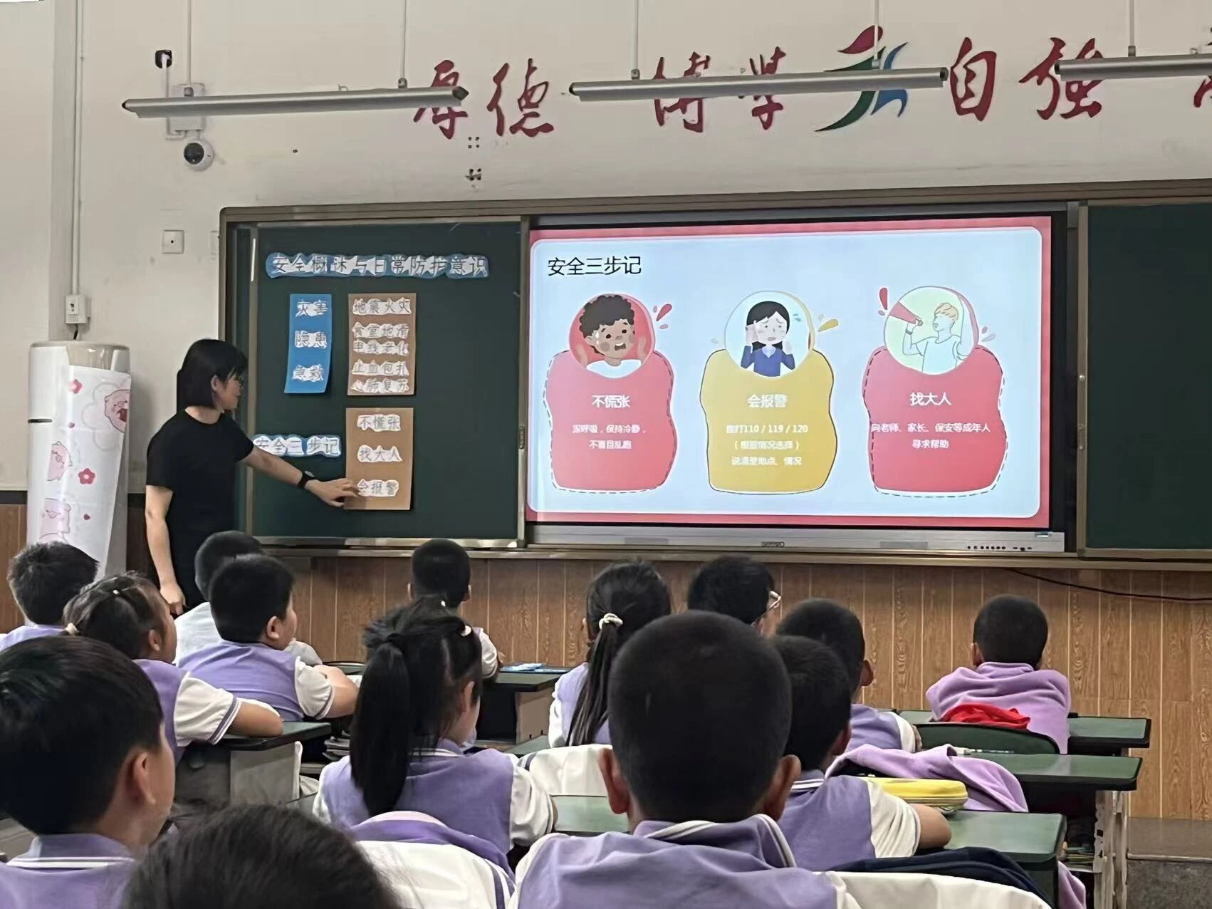 在系统推进课程落地过程中,中心与金沙江路学校教师团队开展多轮联合教研,针对三年级学生认知特点,共同开发出融合互动问答与场景演练的定制化课程模块,并完成对该年级教师的系统培训。10月15日,该校三年级304名学生顺利开展首门安全应急课程。课程由金沙江路学校教师主讲,中心教师现场协同指导,课堂氛围活跃,学生在参与中有效提升了风险防范意识与应急处置能力。