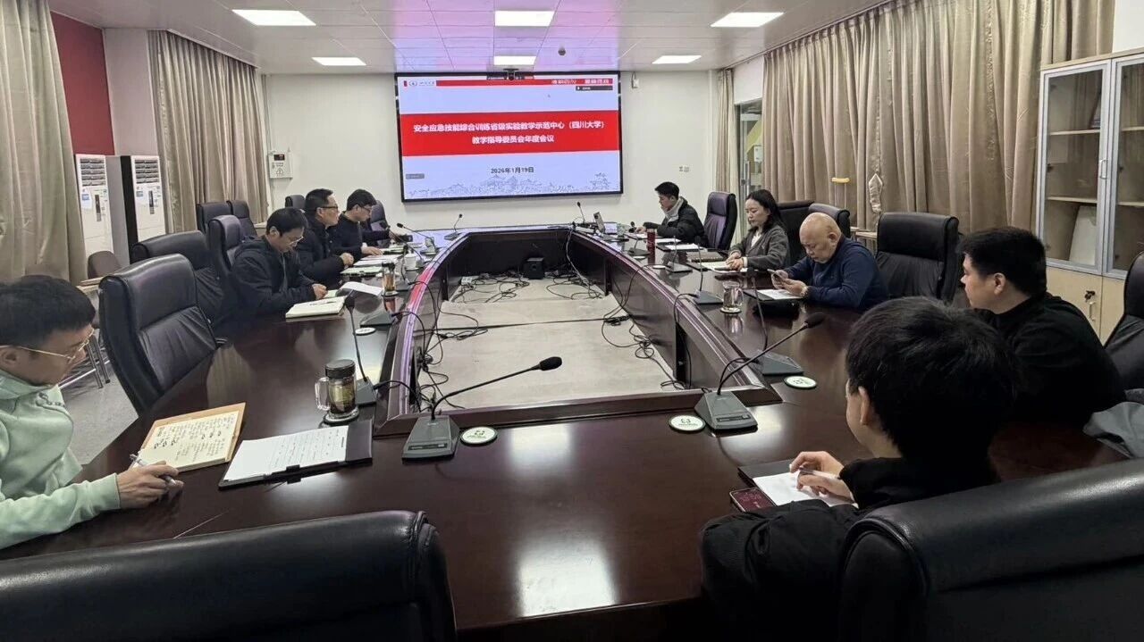 2026年1月19日,安全应急技能综合训练省级实验教学示范中心(四川大学)2025年度教学指导委员会工作会议在四川大学灾后重建与管理学院C313隆重举行。