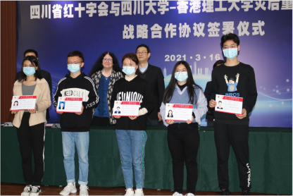 本次会议的最后一项议程为双方领导为学员颁发“红十字救护员证”。据悉,“红十字救护员证”是依照《中华人民共和国红十字会法》的相关要求经过培训及考核后颁发的救护证书,能够在他人需要救助的危急时刻提供相应救助资格的认定。官方数据显示,在刚过去的2020-2021年秋季学期,我校共有600名本科生在中心完成了《实验室安全与环境保护》及《安全知识与应急基本技能》两门课程,共有193名研究生在中心完成了《实验室安全与应急技能》课程,课程覆盖32个学院。