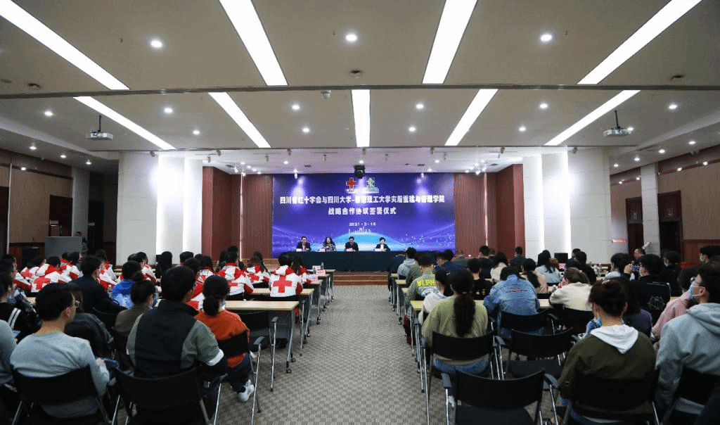双方签署了四川省红十字会-四川大学灾后重建学院战略合作协议。双方领导共同为我校获得四川省红十字会救援证的学员颁发“红十字救护员证”证书。