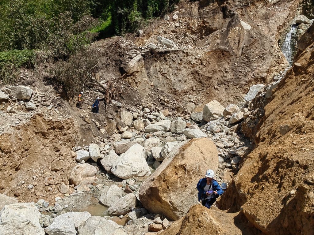 专家团队徒步翻越山体滑坡