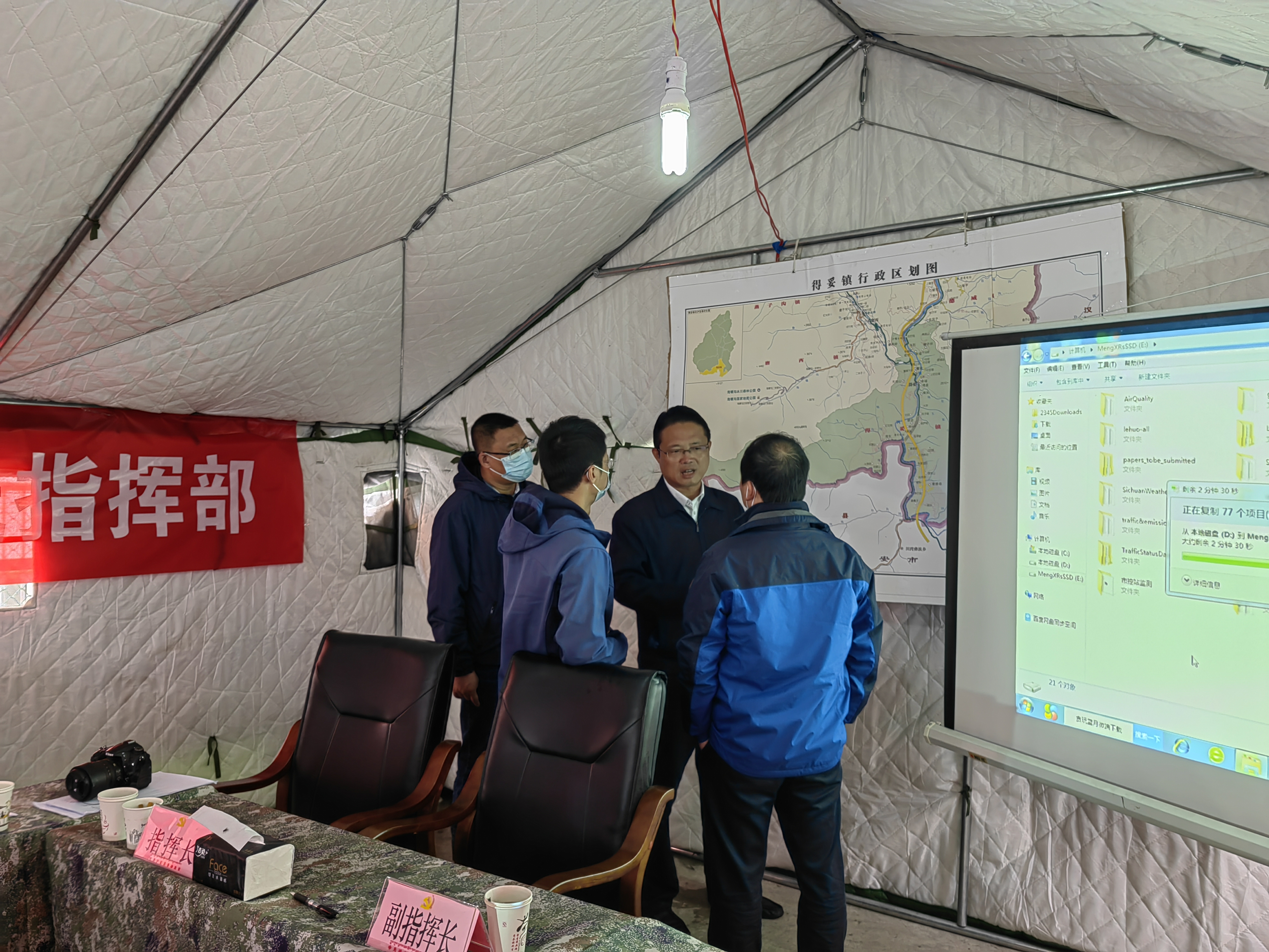 专家组在指挥部了解救灾进展
