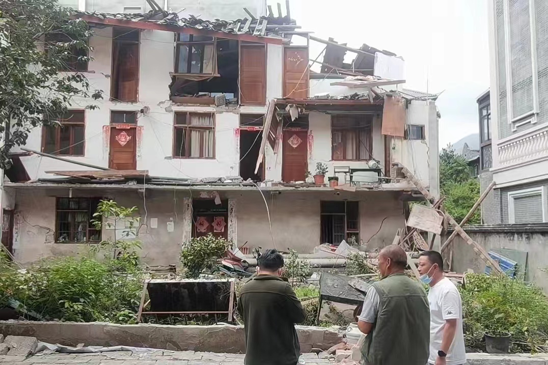 团队成员在磨西镇开展灾情调查