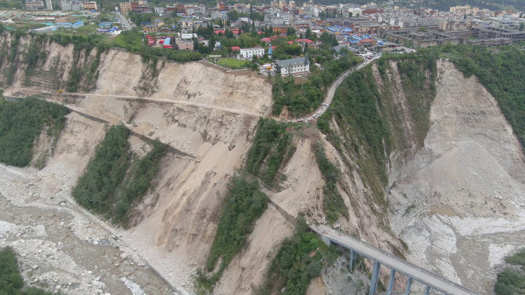 在磨西镇,由于道路受山体滑坡所掩埋,无法通达此次地震震中的海螺沟景区内部,专家团队利用无人机对海螺沟沟口等地区的典型地质灾害进行了航拍调查。