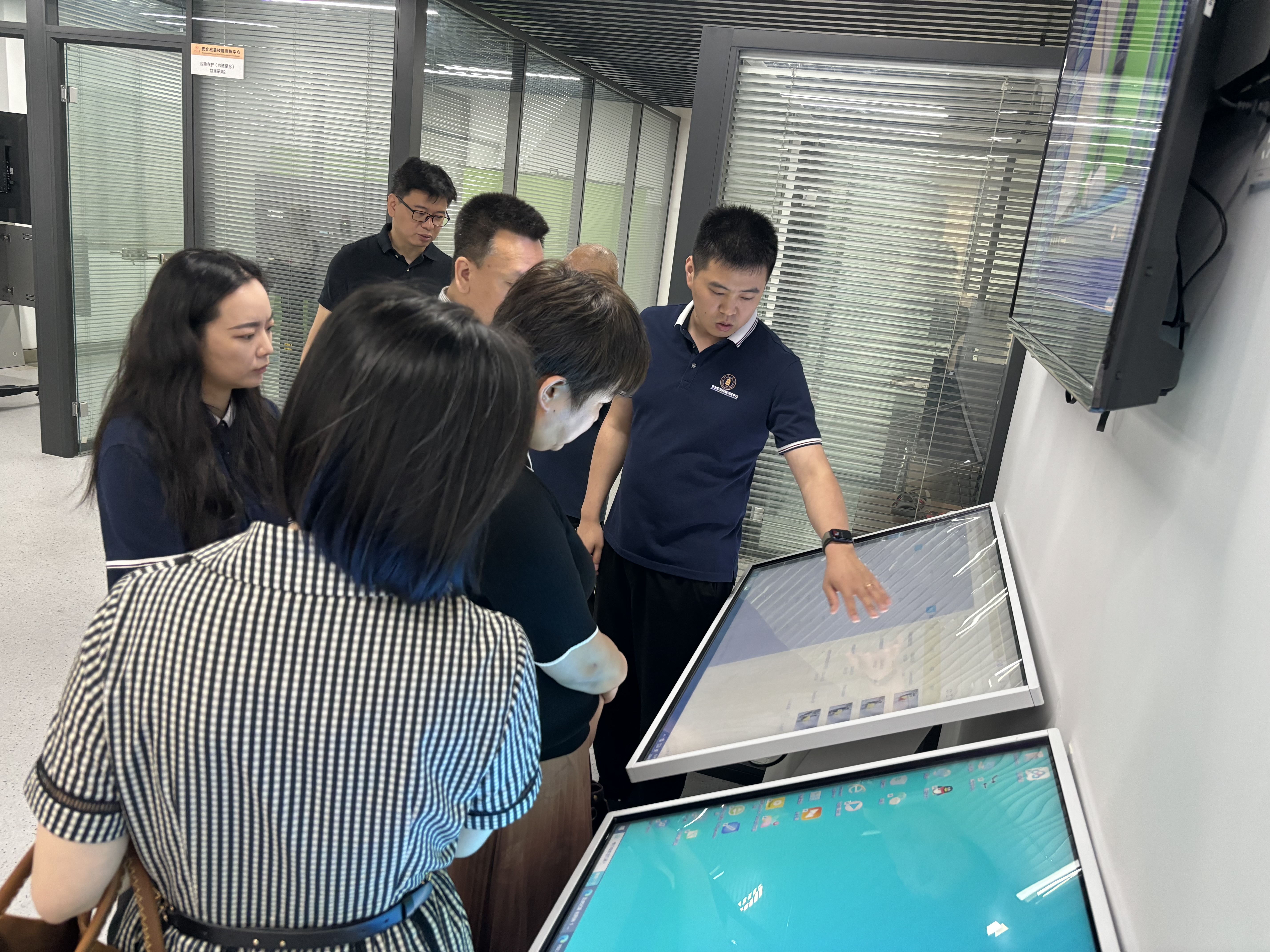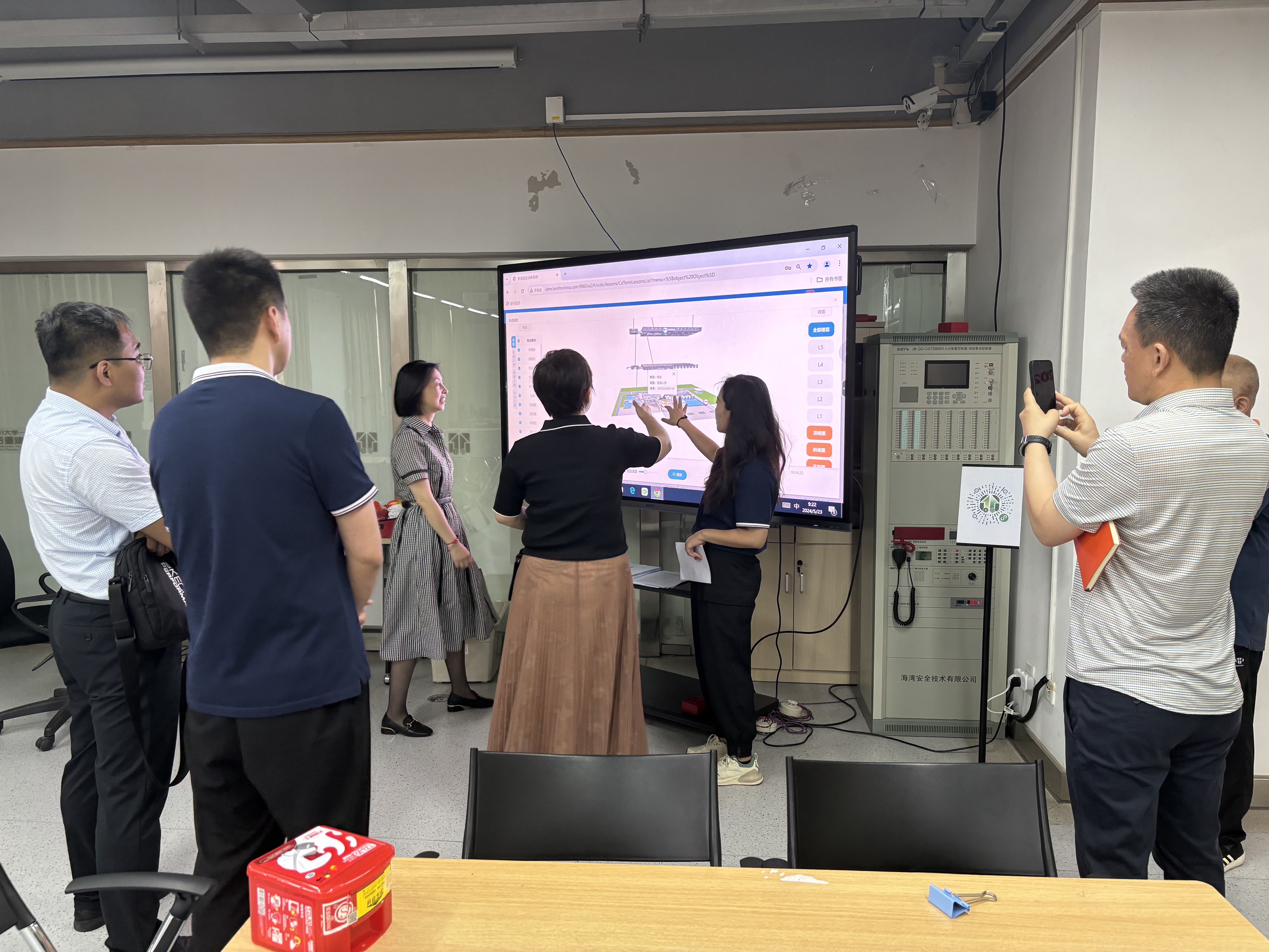 一行人参观了中心的教学实验室,并亲身体验了安全应急教育实操项目,观摩了大楼火灾应急疏散演练及系统。参观过程中,各位嘉宾对中心的安全应急教育新模式、智能化考核设备充满浓厚兴趣。
