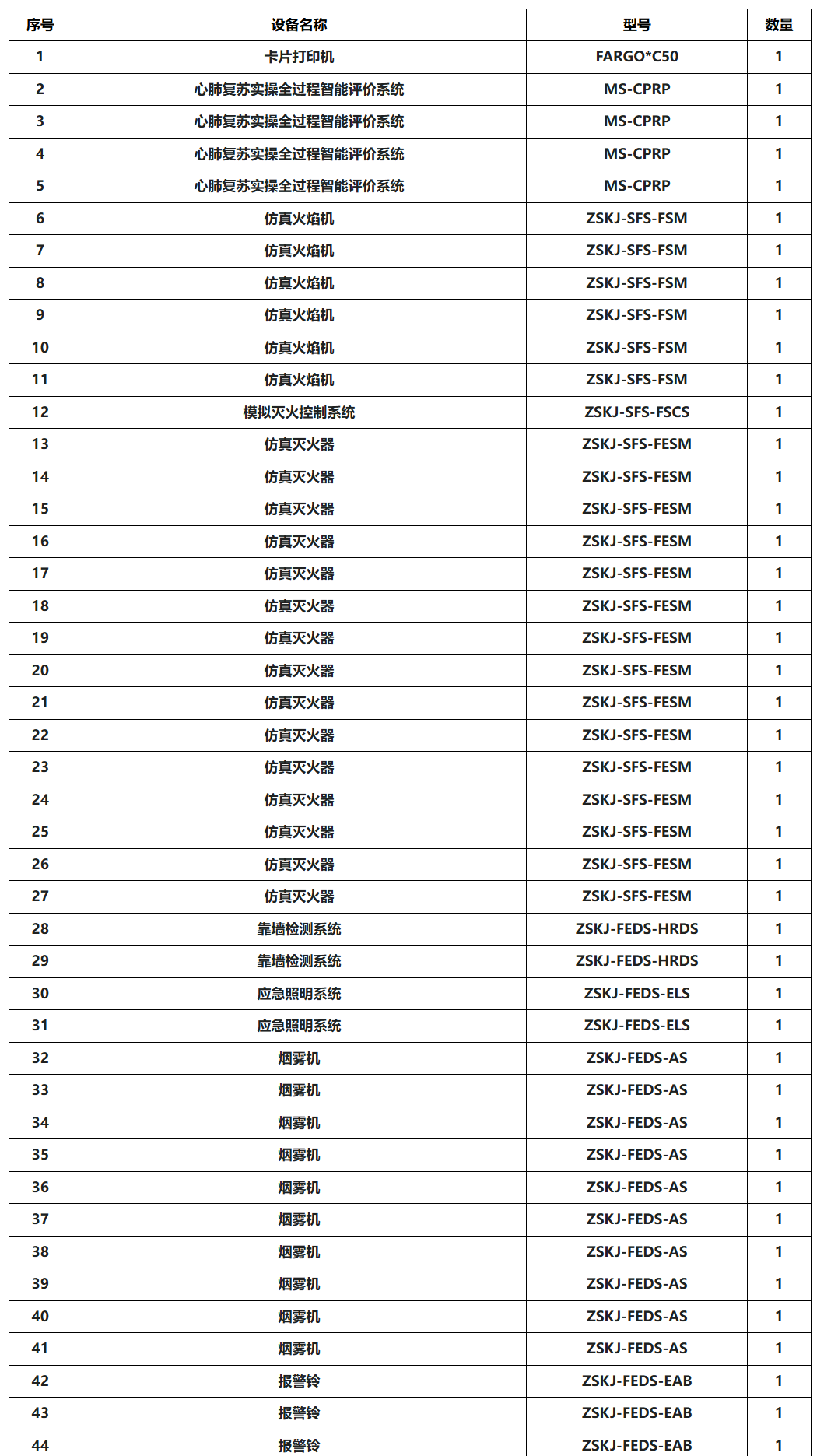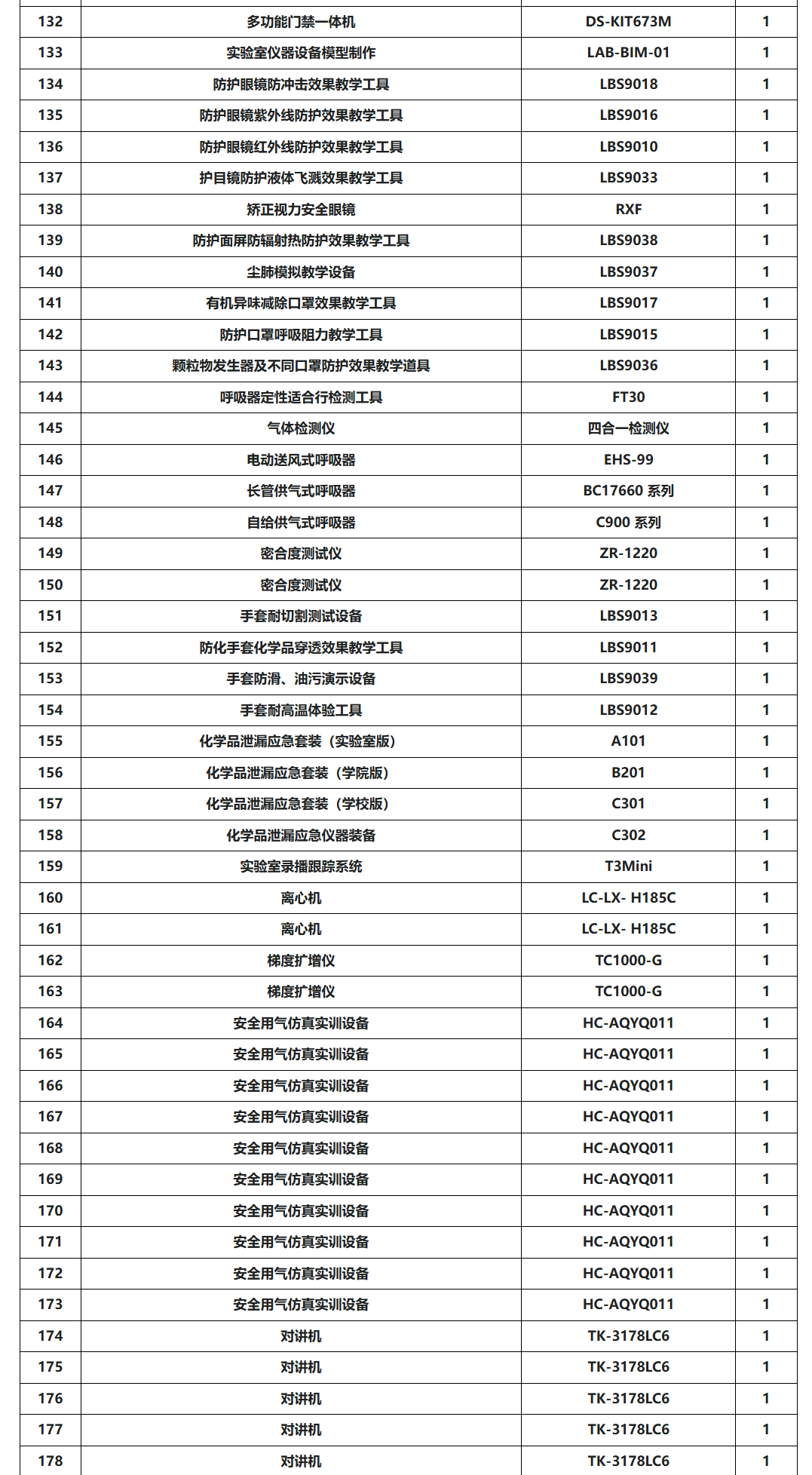 设备清单